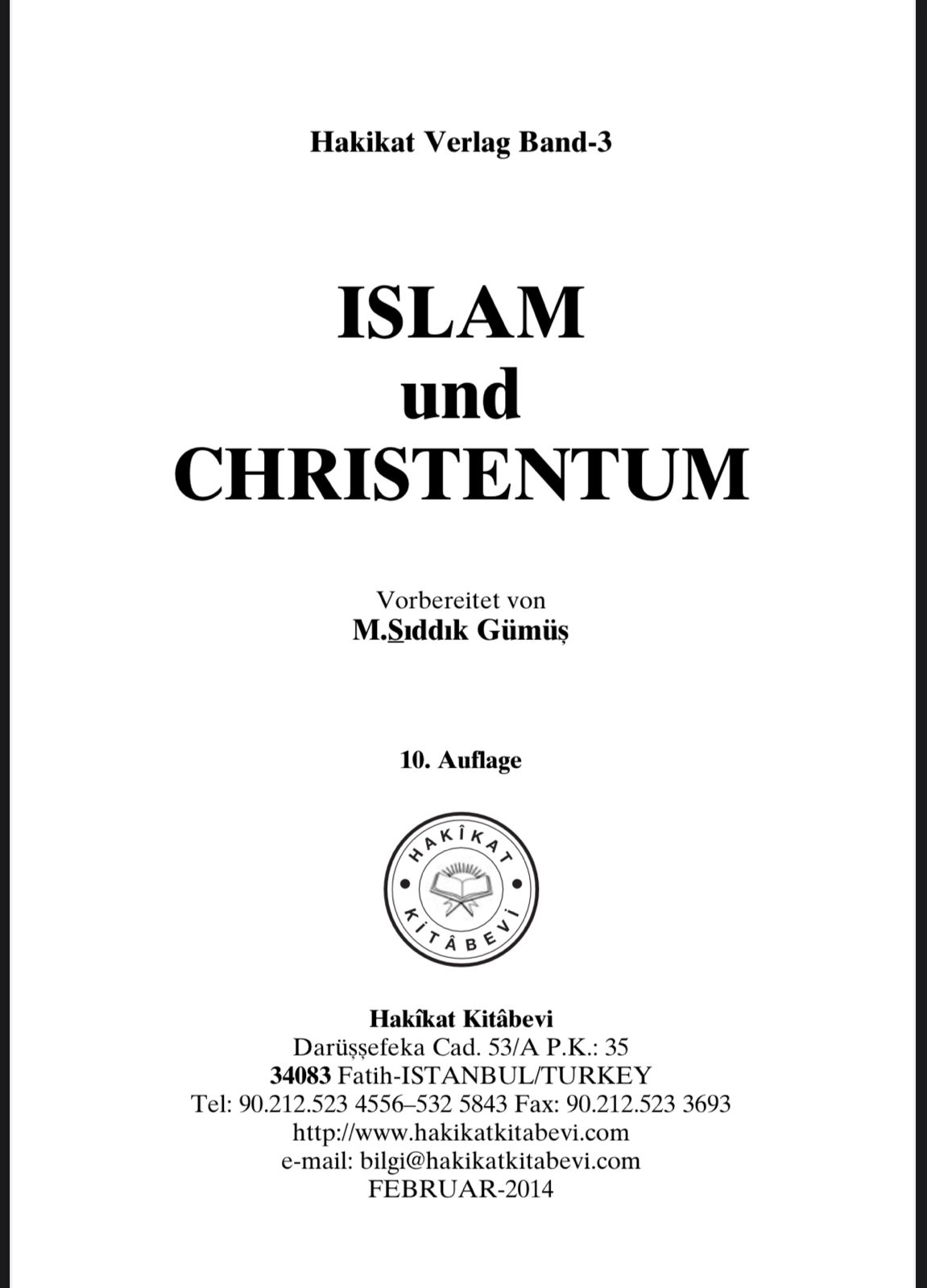 BOOK REGAREDING ISLAM AND CHRISTENTUM